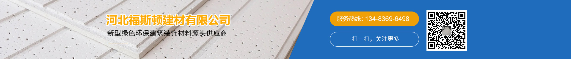 河北福斯頓建材有限公司位于河北省晉州市,是一家專(zhuān)業(yè)生產(chǎn)銷(xiāo)售:硅酸鈣板、纖維水泥板、礦棉板、硅酸鈣天花板、冰火板、烤漆龍骨、水泥壓力板的生產(chǎn)型企業(yè),我公司專(zhuān)注于高品質(zhì)、節(jié)能、環(huán)保、綠色建材產(chǎn)品的設(shè)計(jì)、研發(fā)、生產(chǎn)、銷(xiāo)售于一體的創(chuàng)新企業(yè)。 公司致力于研發(fā)生產(chǎn)新型綠色環(huán)保建筑裝飾材料,可生產(chǎn)各種型號(hào)硅酸鈣板、纖維水泥板、礦棉板、硅酸鈣天花板、冰火板、烤漆龍骨、水泥壓力板等建材,產(chǎn)品性能穩(wěn)定、價(jià)格合理,廣泛...